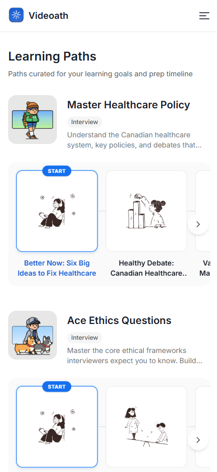 "My interview was in 3 weeks when I found Videoath. The timed practice with real MMI conditions helped me manage my nerves. On interview day, the format felt familiar."